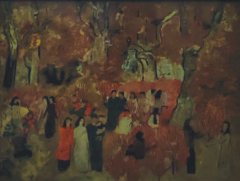 Tác phẩm "Chợ Hoa Tết" của họa sĩ Đặng Thu Hương. Ảnh: Cục Mỹ thuật, Nhiếp ảnh và Triển lãm