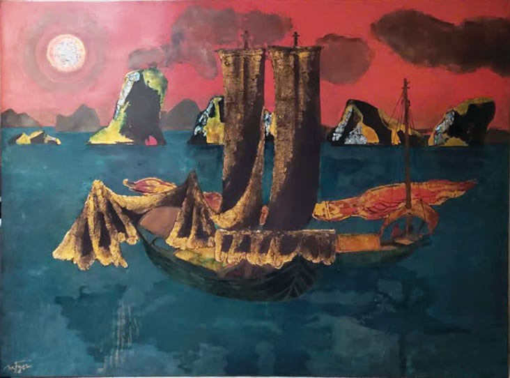 Tác phẩm "Thuyền Hạ Long" của họa sĩ Nguyễn Văn Tỵ. Ảnh: Cục Mỹ thuật, Nhiếp ảnh và Triển lãm