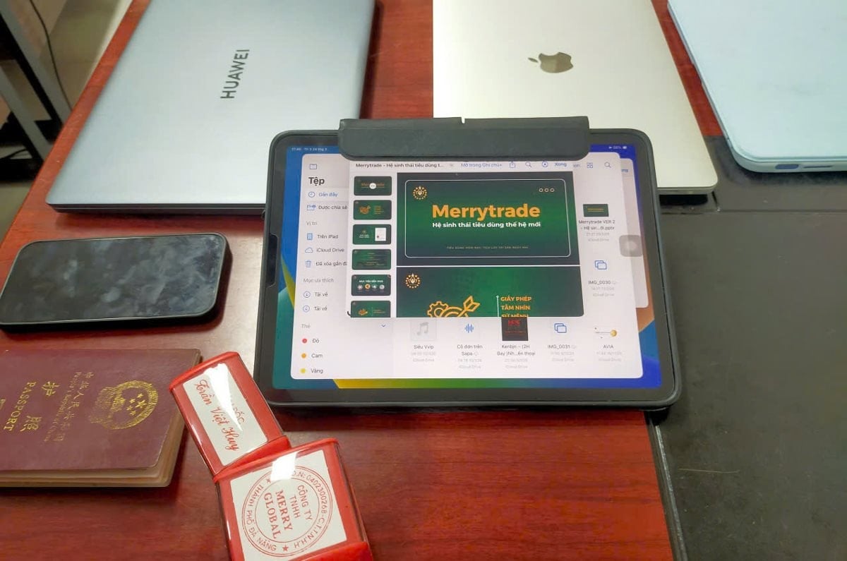 Không chỉ tạo lập ứng dụng "Merry Trade" trên nền tảng số, các đối tượng này còn "pháp nhân hóa" hoạt động lừa đảo bằng cách thành lập Công ty TNHH Merry Global tại Đà Nẵng (do Trần Việt Huy làm Giám đốc). Với số vốn điều lệ ảo lên tới 10 tỷ đồng và trụ sở đặt tại vị trí đắc địa, chúng đã tạo nên một vẻ ngoài hào nhoáng, khiến các nhà đầu tư lầm tưởng đây là một sàn Thương mại điện tử uy tín, có tiềm lực tài chính mạnh. Nhưng thực chất, Merry Trade chỉ là một trò chơi con số do Xiang Guoquan trực tiếp điều khiển phía sau.