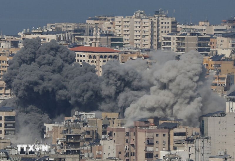 Khói bốc lên từ những toà nhà sau vụ tấn công của Israel vào khu vực Haret Hreik, phía Nam thủ đô Beirut, Liban. Ảnh: TTXVN