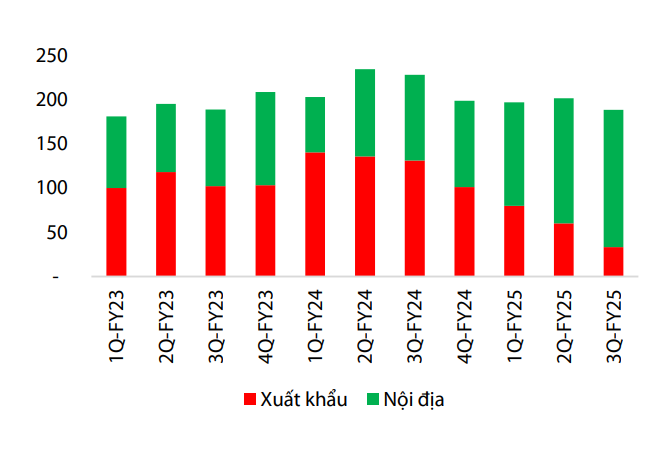 Theo đánh giá của Chứng khoán Rồng Việt, chiến lược tập trung vào thị trường nội địa giúp GDA giảm đáng kể mức độ phụ thuộc vào xuất khẩu, đồng thời cải thiện khả năng kiểm soát chi phí bán hàng và logistics. Trong quý IV/2025, với giả định thận trọng, sản lượng bán hàng được kỳ vọng tiếp tục tập trung ở thị trường trong nước, trong khi biên lợi nhuận gộp duy trì tương đương quý III. Lợi nhuận sau thuế cổ đông mẹ (LNST CĐM) quý IV/2025 theo đó có thể đạt khoảng 96 tỷ đồng, tăng mạnh 357% so với cùng kỳ năm trước.