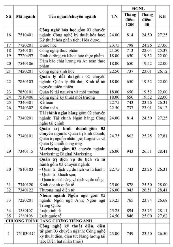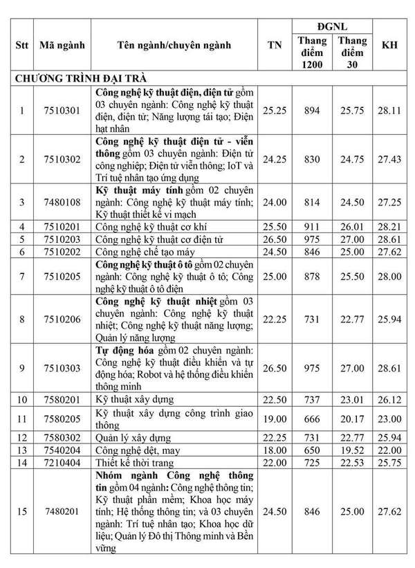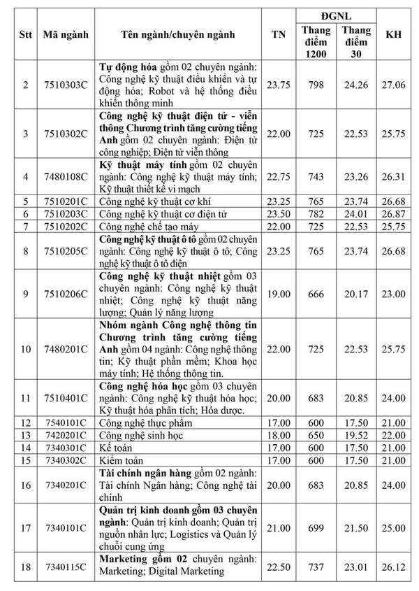 Bảng điểm chuẩn Trường Đại học Công nghiệp TP. Hồ Chí Minh năm 2025