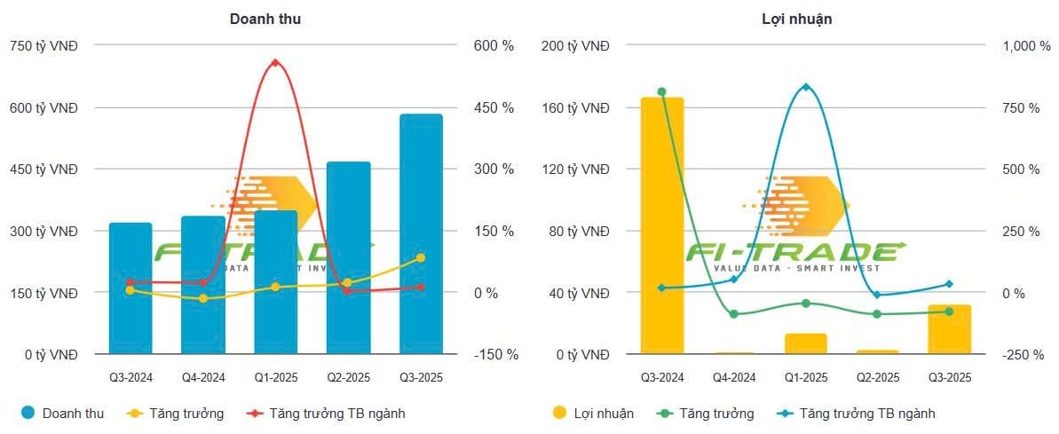 Báo cáo tài chính quý III/2025 cho thấy, PDV ghi nhận doanh thu hợp nhất 586 tỷ đồng, gần gấp đôi cùng kỳ, nhưng phần lớn đến từ mảng thương mại – vốn có biên lợi nhuận thấp. Mảng vận tải cốt lõi đạt 264 tỷ đồng doanh thu, giảm 3,3%, trong khi biên lợi nhuận gộp giảm từ 25% xuống 15% do chi phí nhiên liệu và vận hành tăng cao.