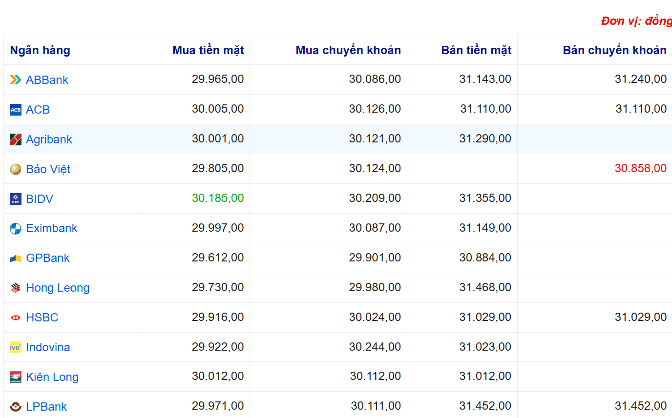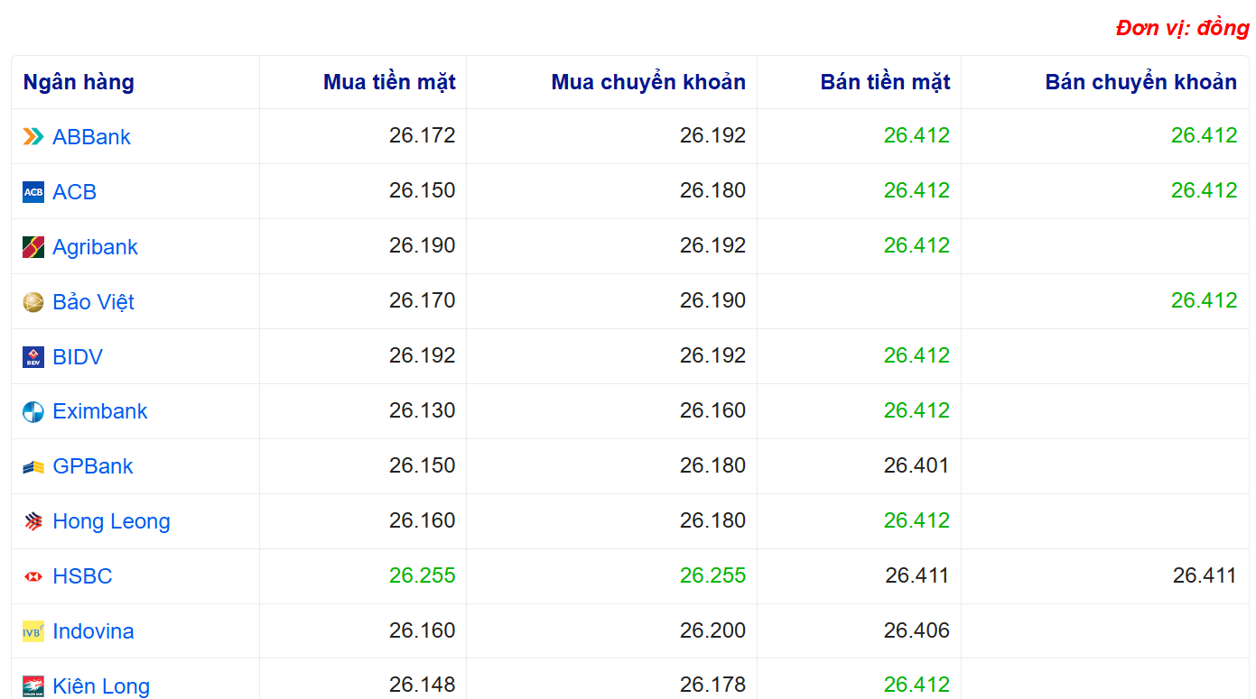 Tỷ giá USD tại một số ngân hàng: