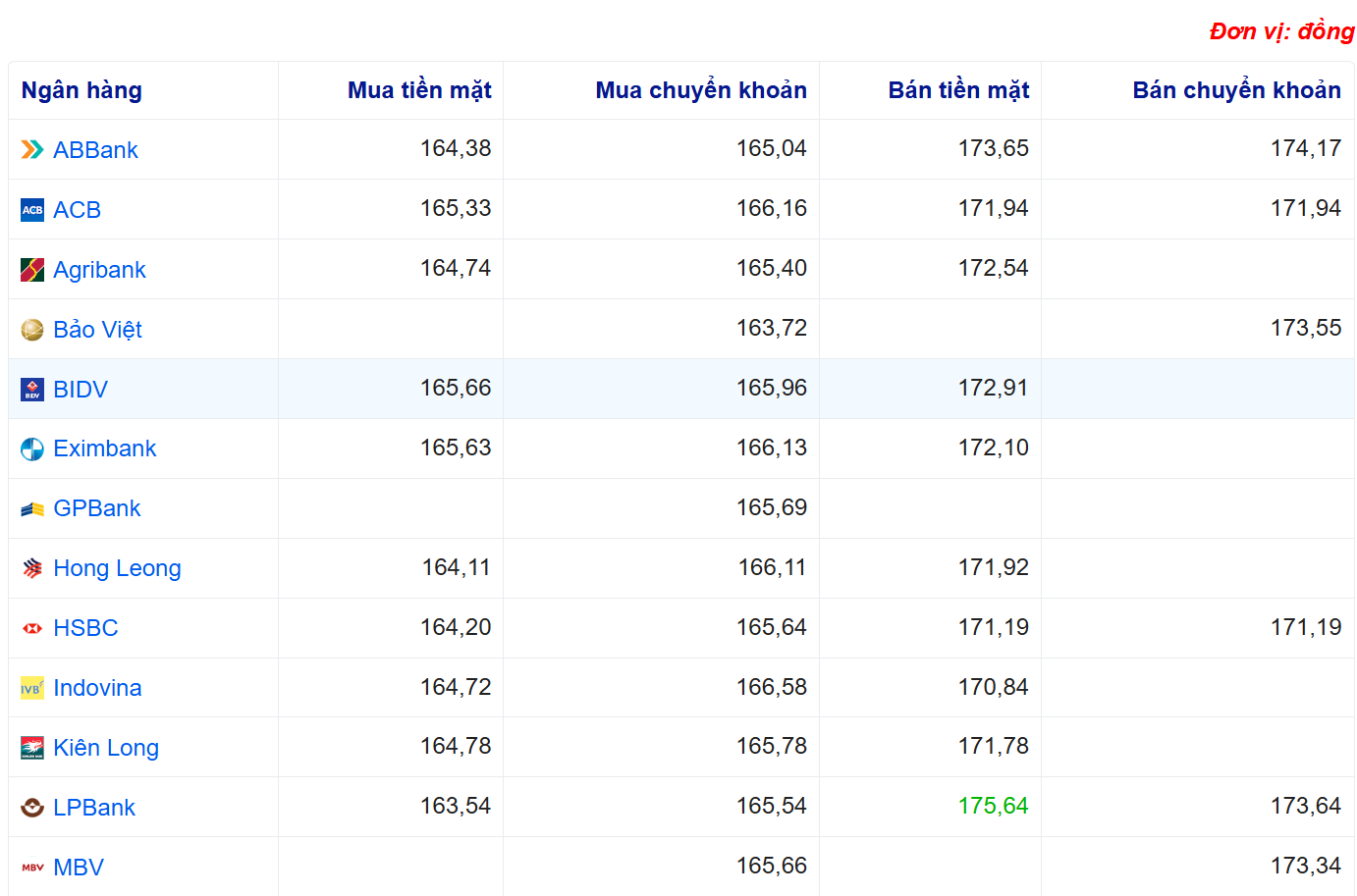 Tỷ giá Yên Nhật tại một số ngân hàng: