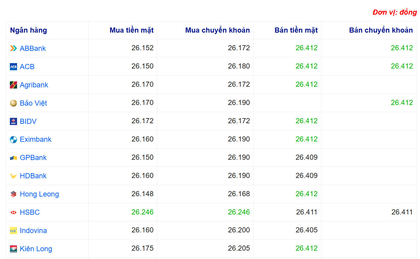 Tại thị trường trong nước, đầu phiên 10/12, Ngân hàng Nhà nước công bố tỷ giá trung tâm ở mức 25.155 đồng/USD, tăng nhẹ so với trước đó. Tỷ giá tại Sở giao dịch Ngân hàng Nhà nước cũng nhích lên 23.948 – 26.362 đồng/USD. Các ngân hàng thương mại duy trì mức giá khá ổn định, khi Vietcombank giao dịch USD ở mức 26.142 – 26.412 đồng, VietinBank niêm yết 26.005 – 26.412 đồng và BIDV ở mức 26.172 – 26.412 đồng/USD.