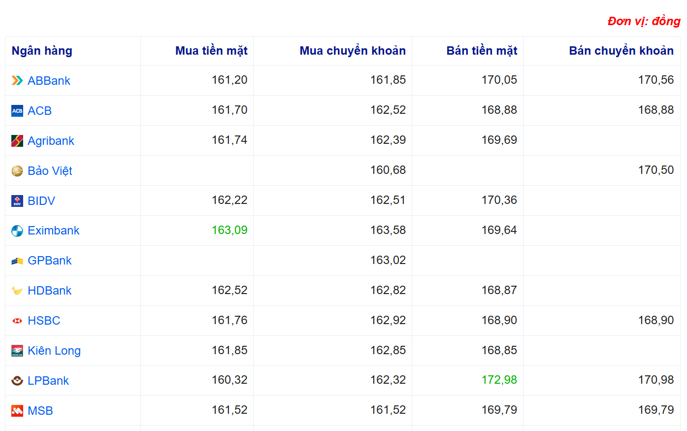 Tỷ giá yên Nhật tiếp tục giữ ổn định trong khoảng 152 – 168 đồng/JPY tại Sở giao dịch Ngân hàng Nhà nước; tại các ngân hàng thương mại, yên Nhật dao động quanh mức 159 – 170 đồng/JPY.