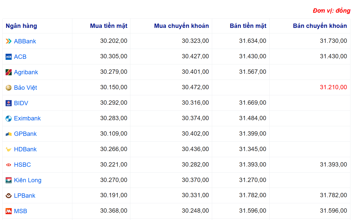 Tỷ giá yên Nhật tại một số ngân hàng: