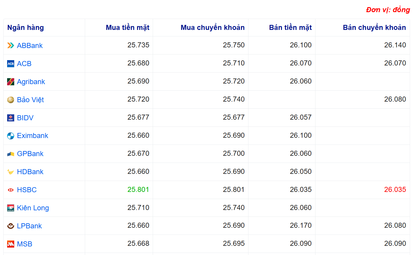 Ở thị trường trong nước, tỷ giá USD tiếp tục xu hướng giảm nhẹ. Tại Sở giao dịch Ngân hàng Nhà nước, tỷ giá USD mua vào – bán ra được điều chỉnh xuống 23.853 – 26.257 đồng/USD. Tại các ngân hàng thương mại lớn, giá USD dao động trong biên độ hẹp. Vietcombank niêm yết USD ở mức 25.650 đồng mua vào và 26.060 đồng bán ra; VietinBank giao dịch quanh mức 25.525 – 26.065 đồng/USD; trong khi BIDV mua vào 25.677 đồng và bán ra 26.057 đồng/USD.