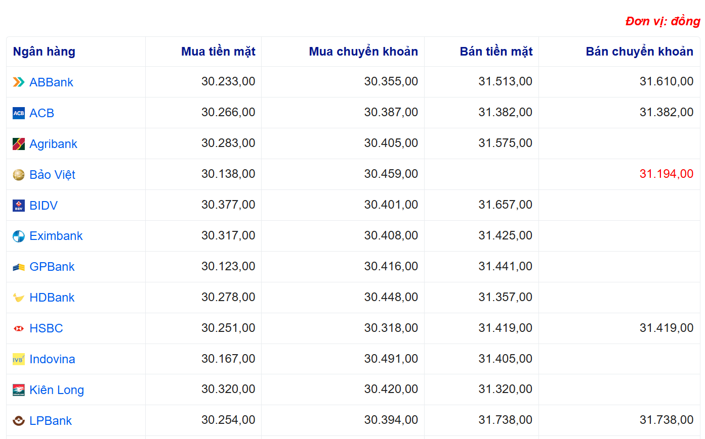 Đối với các ngoại tệ khác, tỷ giá euro tại Sở giao dịch Ngân hàng Nhà nước tăng lên 28.042 – 30.994 đồng/EUR. Tại các ngân hàng thương mại, giá mua vào euro dao động quanh 29.936 – 30.377 đồng/EUR, còn giá bán ra phổ biến trên 31.600 đồng/EUR.