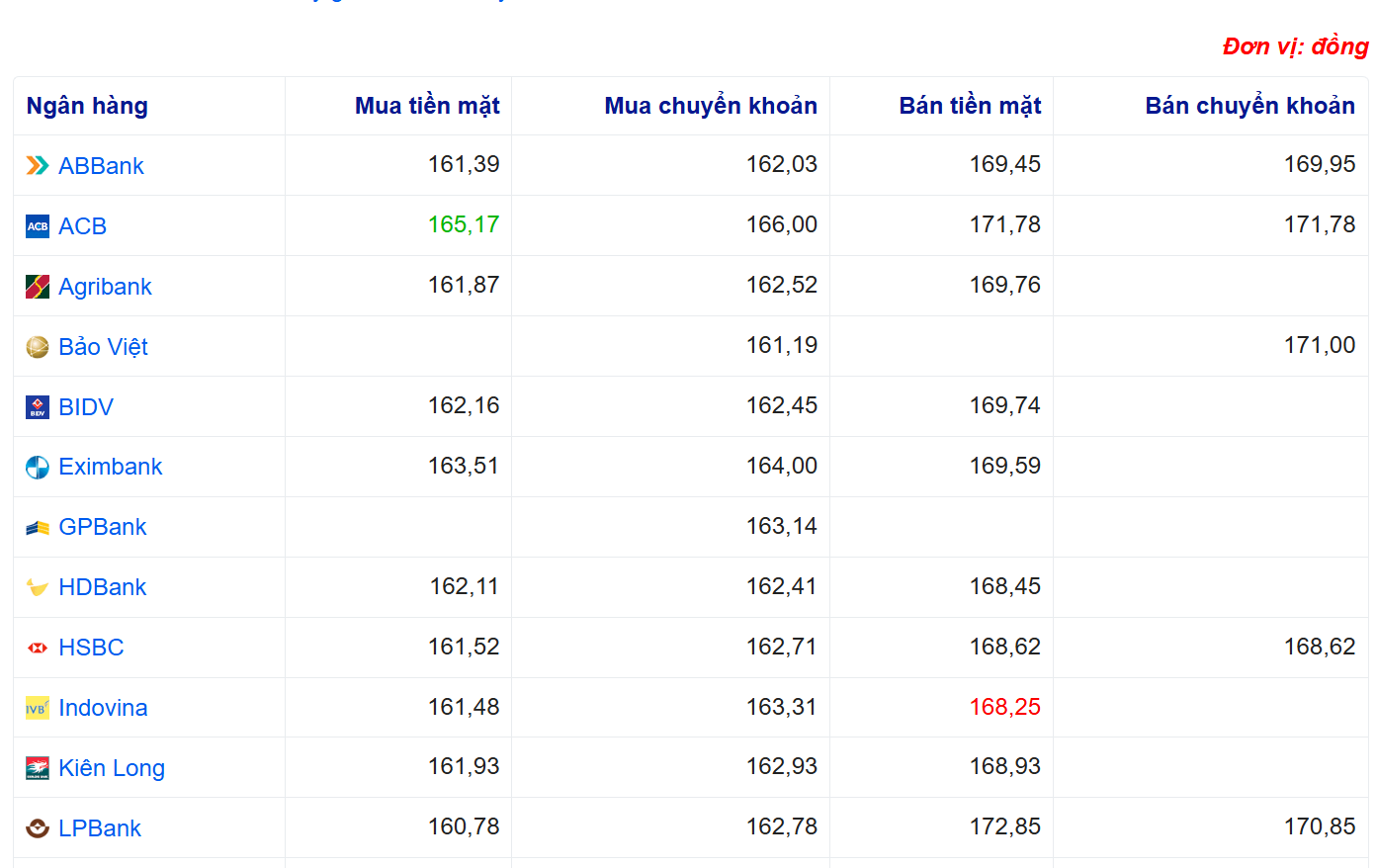 Tỷ giá yên Nhật tại một số ngân hàng: