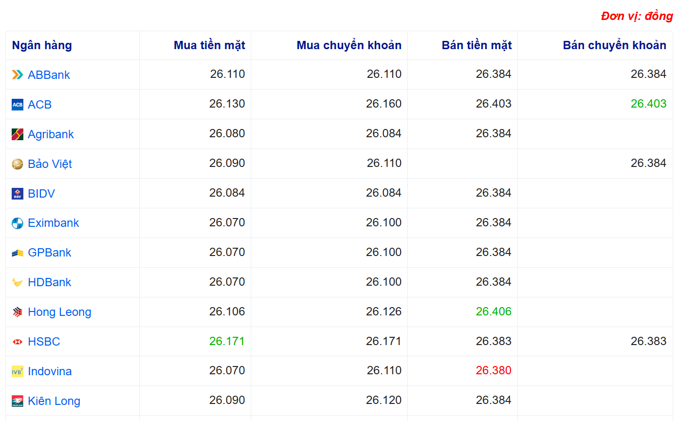 Ở thị trường trong nước, Ngân hàng Nhà nước công bố tỷ giá trung tâm của đồng Việt Nam với USD giữ nguyên ở mức 25.128 đồng/USD. Tỷ giá USD tại Sở giao dịch Ngân hàng Nhà nước giữ nguyên ở mức 23.922 đồng mua vào và 26.334 đồng bán ra. Tại các ngân hàng thương mại, Vietcombank niêm yết USD ở mức 26.054 – 26.384 đồng/USD, VietinBank giao dịch quanh 25.923 – 26.384 đồng/USD và BIDV ở mức 26.084 – 26.384 đồng/USD.