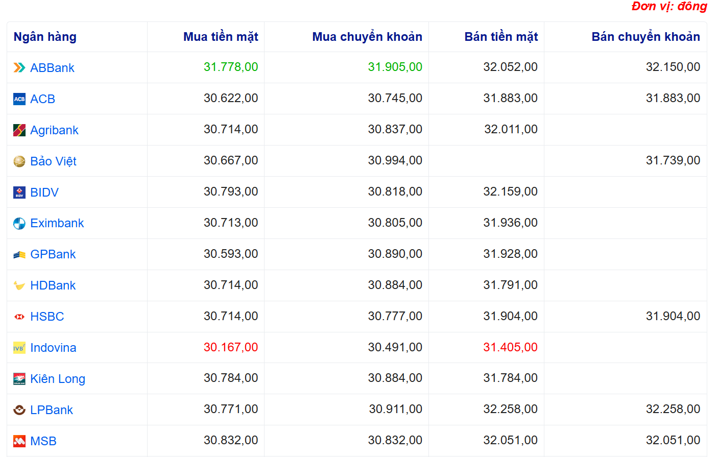 Tại các ngân hàng thương mại lớn, tỷ giá USD nhìn chung ổn định với giá mua vào dao động quanh 25.700 – 25.900 đồng/USD và giá bán ra phổ biến ở mức 26.245 – 26.260 đồng/USD.