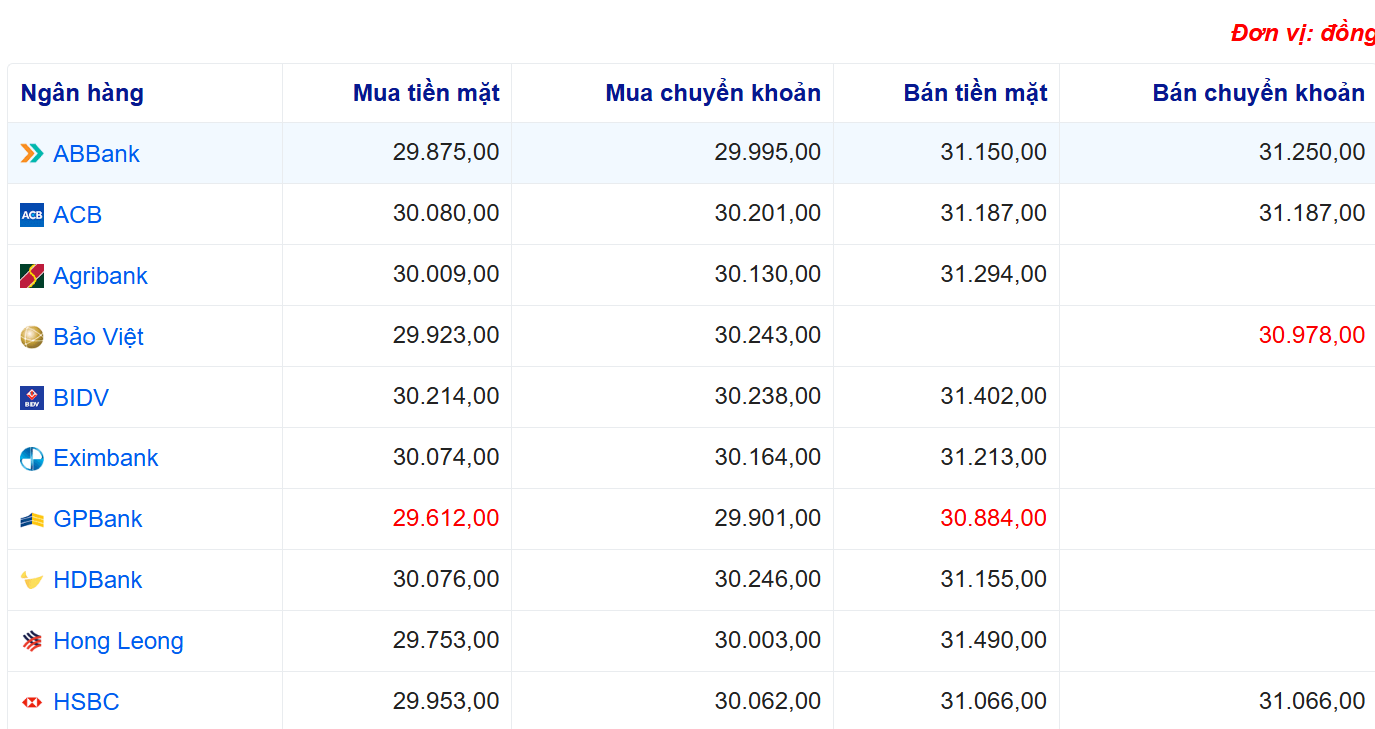 Ở nhóm ngân hàng thương mại, tỷ giá USD sáng 3/12 ghi nhận xu hướng tăng tại nhiều đơn vị. Ngân hàng Nhà nước niêm yết tỷ giá tham khảo ở mức 23.959 - 26.375 đồng/USD, tương đồng với mức công bố của nhiều ngân hàng.