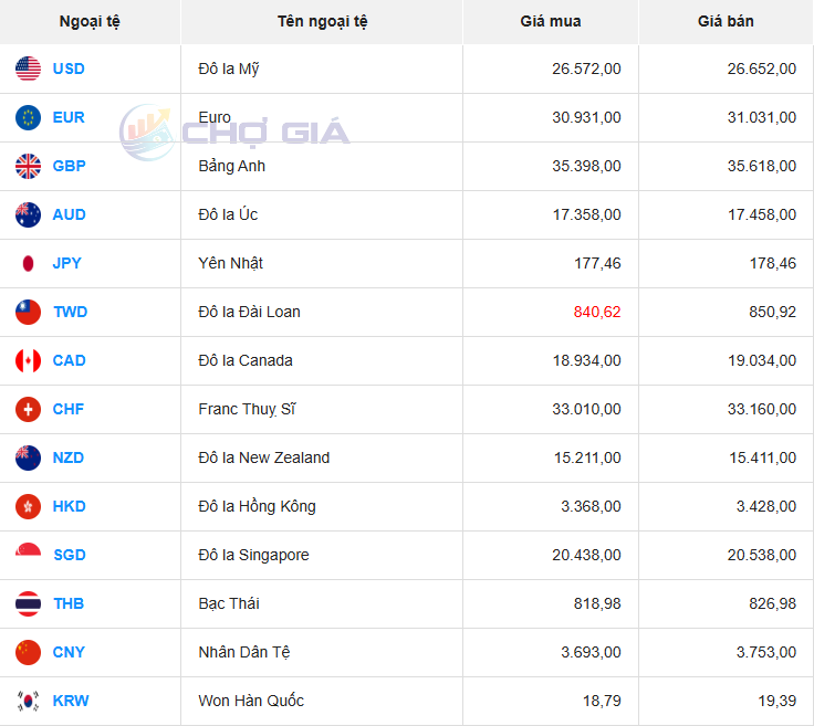 Ngân hàng NCB đang bán chuyển khoản USD với giá thấp nhất là: 1 USD = 26.400 VND