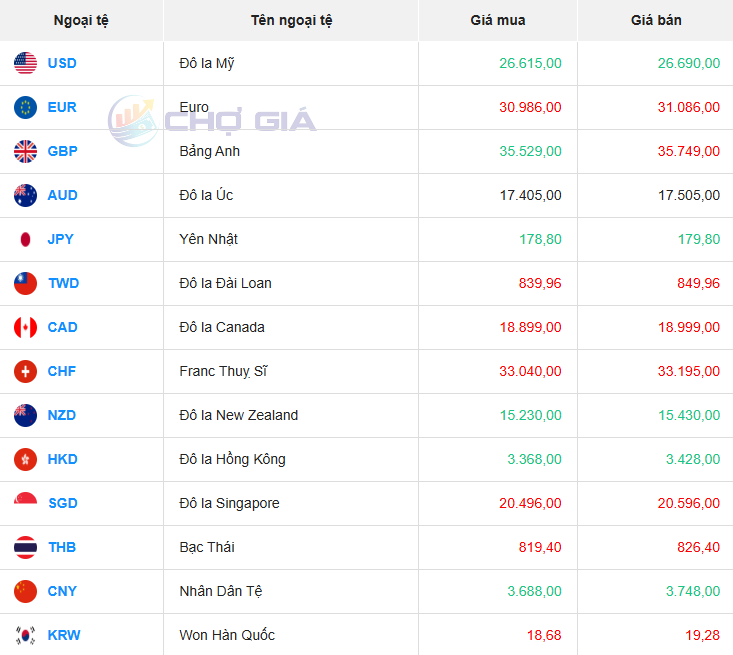 Ngân hàng NCB đang bán chuyển khoản USD với giá thấp nhất là: 1 USD = 26.400 VND
