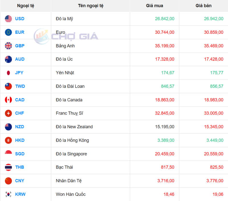 Cụ thể, tại Ngân hàng Vietcombank, tỷ giá USD hiện ở mức 26.134 - 26.384 đồng/USD khi bán ra, giảm 2 đồng ở cả hai chiều mua và bán, so với phiên giao dịch ngày hôm qua.