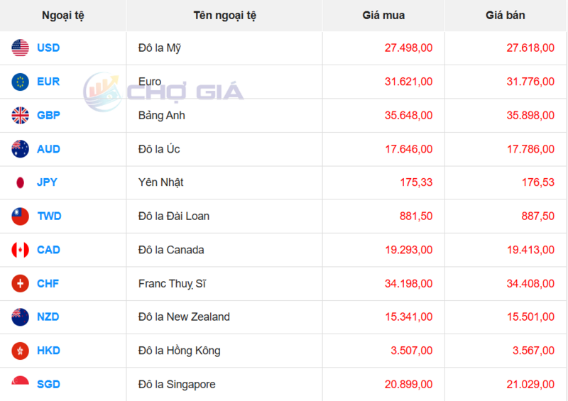 Tỷ giá USD tại một số ngân hàng hôm nay. Nguồn: Webgia.com.