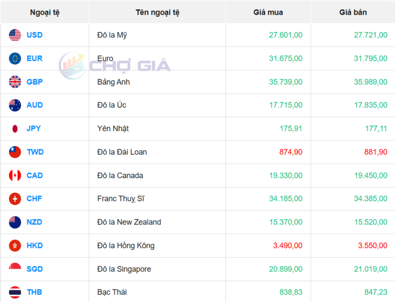 Tỷ giá USD tại một số ngân hàng hôm nay. Nguồn: Webgia.com.