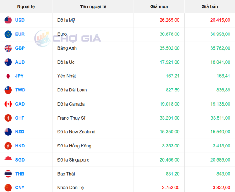 Cụ thể, tại Ngân hàng Vietcombank, tỷ giá USD hiện ở mức 26.051 - 26.381 đồng/USD, giữ nguyên ở cả chiều mua và chiều bán so với phiên giao dịch trước đó.