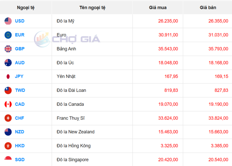 Ngân hàng OCB đang mua chuyển khoản Đô la Mỹ với giá cao nhất là: 1 USD = 26.141 VND