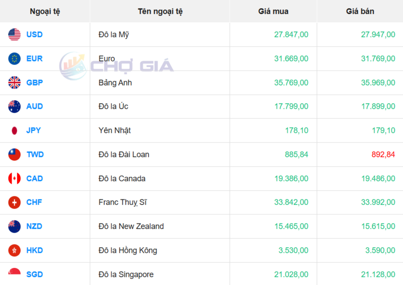 Ngân hàng NCB đang mua tiền mặt Đô la Mỹ với giá thấp nhất là: 1 USD = 25.912 VND
