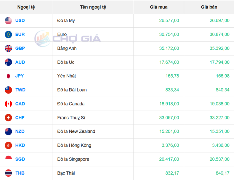 Cụ thể, tại Ngân hàng Vietcombank, tỷ giá USD hiện ở mức 26.050 - 26.380 đồng/USD, giảm 6 đồng ở cả chiều mua và chiều bán so với phiên giao dịch trước đó.