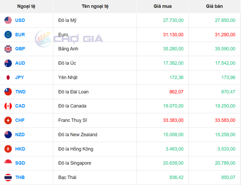 Tỷ giá USD tại một số ngân hàng hôm nay. Nguồn: Webgia.com.