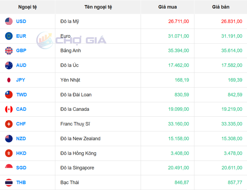 Ngân hàng VietBank, VPBank đang bán chuyển khoản Đô la Mỹ với giá cao nhất là: 1 USD = 26.403 VND