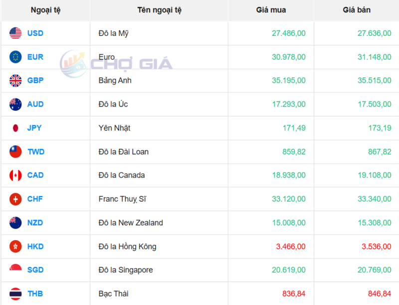 Tỷ giá USD tại một số ngân hàng hôm nay. Nguồn: Webgia.com.