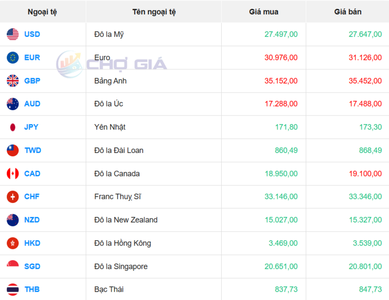 Tỷ giá USD tại một số ngân hàng hôm nay. Nguồn: Webgia.com.