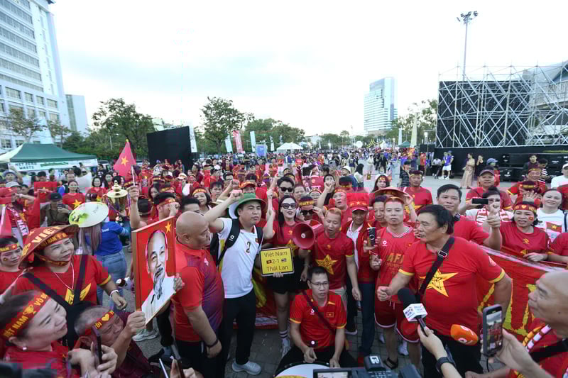 Đáng chú ý, Không khí trước trận chung kết bóng đá nam SEA Games 33 giữa U22 Việt Nam và U22 Thái Lan đang nóng lên từng giờ tại Bangkok. Từ rất sớm, khu vực bên ngoài sân Rajamangala đã nhuộm đỏ bởi màu cờ sắc áo của các cổ động viên Việt Nam.