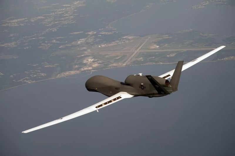 Máy bay không người lái (UAV) RQ-4 Global Hawk là sản phẩm do Tập đoàn Northrop Grumman (Mỹ) phát triển từ cuối thập niên 1990, được xem là một trong những “mắt thần” hiện đại nhất của Không quân Mỹ. Dòng UAV này ra đời nhằm phục vụ nhiệm vụ trinh sát, thu thập thông tin tình báo chiến lược, hỗ trợ các hoạt động quân sự của Mỹ trên phạm vi toàn cầu. Giá mỗi chiếc RQ-4 Global Hawk khoảng 123 triệu USD, chưa bao gồm chi phí vận hành và bảo trì.