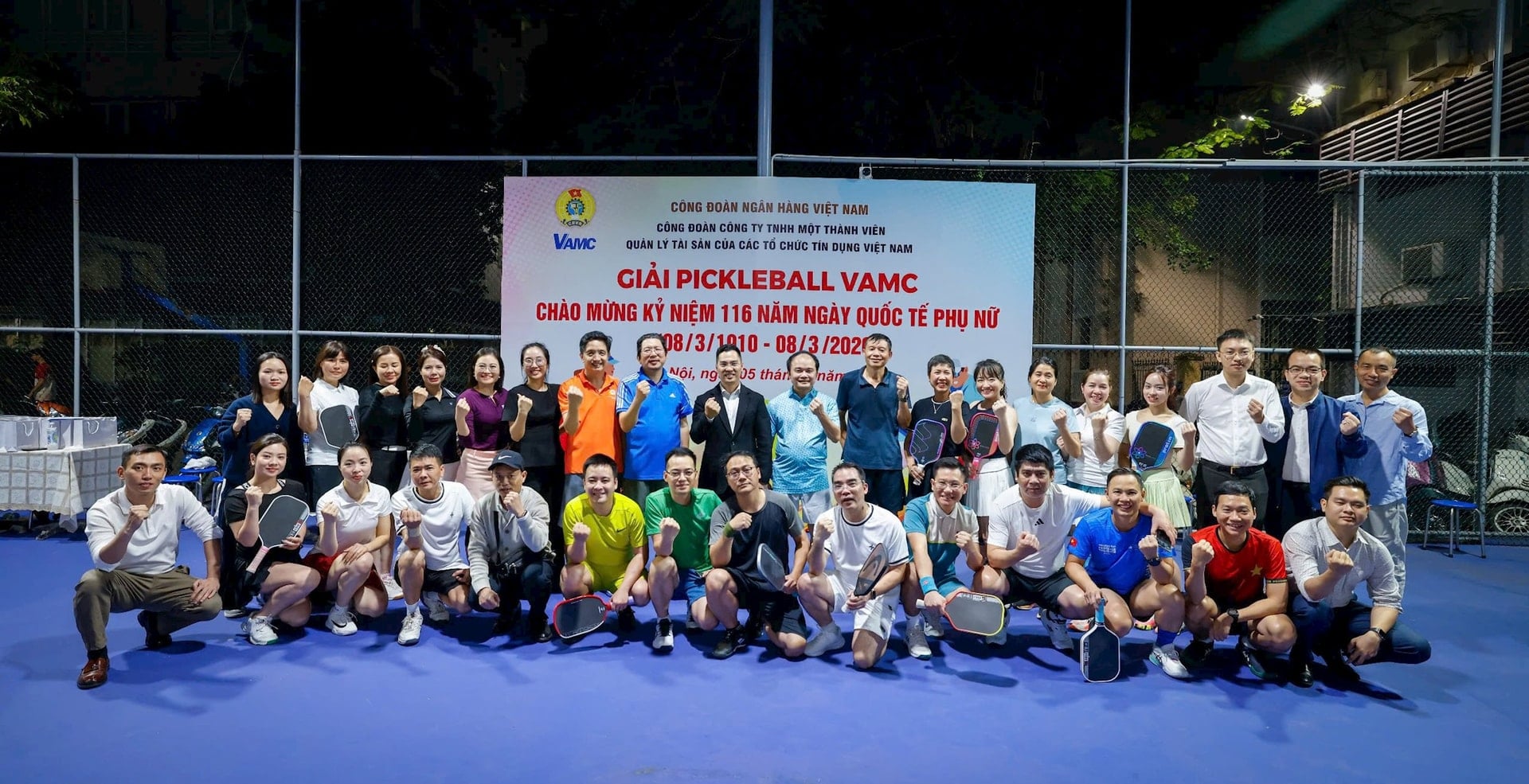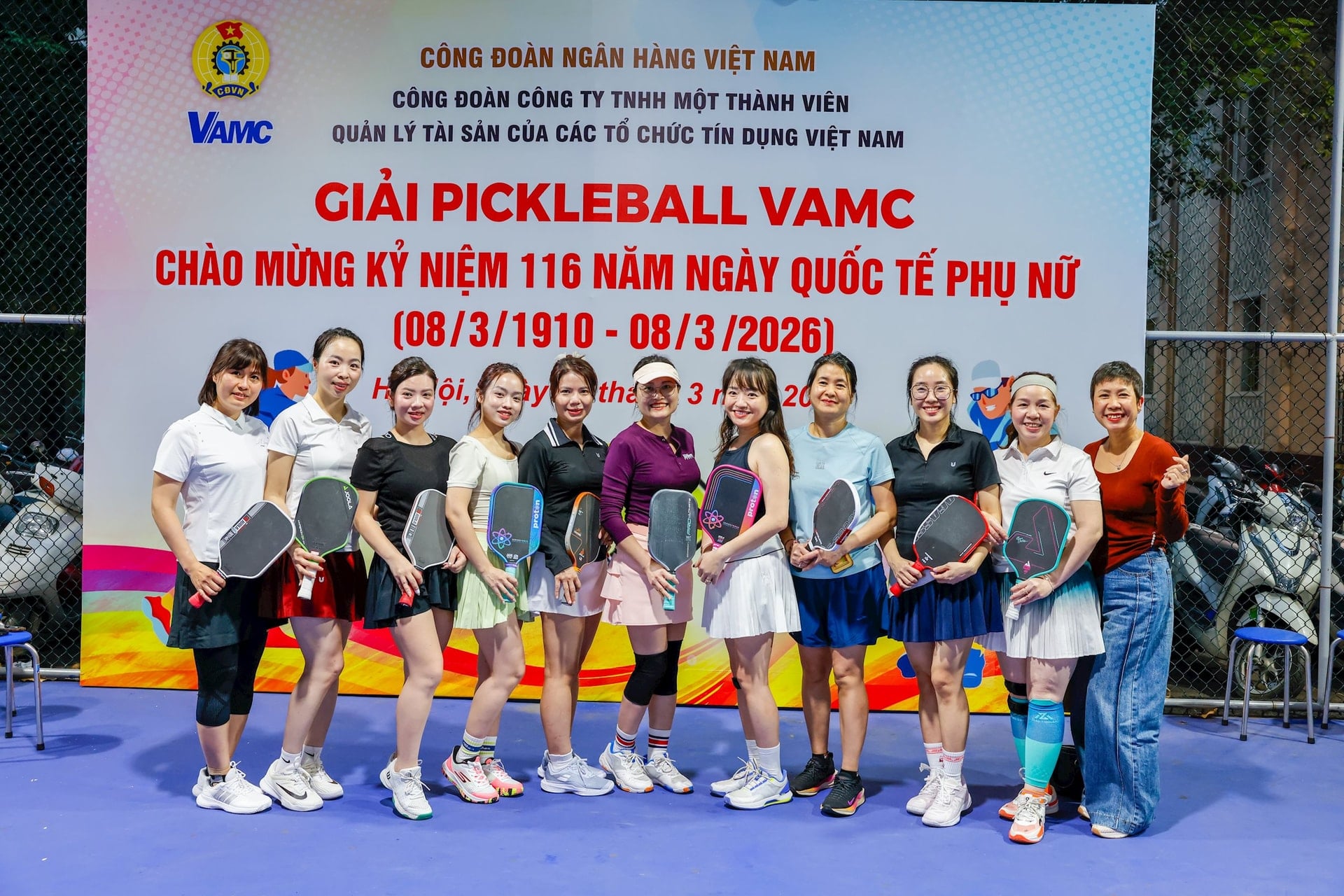 (Banker.vn) Nhân kỷ niệm Ngày Quốc tế Phụ nữ 8/3, Công ty TNHH MTV Quản lý tài sản của các tổ chức tín dụng Việt Nam (VAMC) đã tổ chức chương trình gặp gỡ, chúc mừng tập thể cán bộ nữ đang công tác tại công ty, đồng thời tổ chức giải thi đấu Pickleball nội bộ với sự tham gia hưởng ứng của đông đảo cán bộ, người lao động.