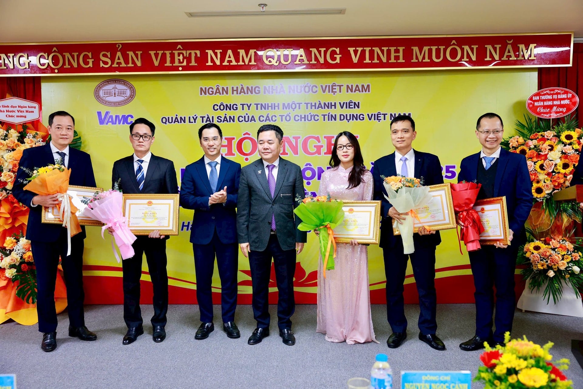 Trong khuôn khổ Hội nghị, ông Đỗ Trọng Toàn, Phó Vụ trưởng Vụ tổ chức cán bộ đã công bố Quyết định số 3404/QĐ-NHNH ngày 16/10/2025 và Quyết định số 3828/QĐ-NHNN ngày 5/12/2025 của Ngân hàng Nhà nước, ghi nhận và biểu dương các tập thể, cá nhân VAMC có thành tích xuất sắc trong phong trào thi đua và hoàn thành nhiệm vụ ngành Ngân hàng.