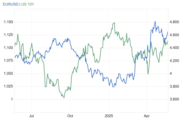 Tình huống hiện tại cho thấy, các nhà đầu tư đang bán tháo trái phiếu chính phủ Mỹ và chuyển sang các tài sản khác - đặc biệt là trái phiếu chính phủ châu Âu, hiện được xem là an toàn hơn. Nếu trái phiếu Mỹ không còn được coi là tài sản phi rủi ro, USD có thể mất vị thế đồng tiền dự trữ chủ đạo.