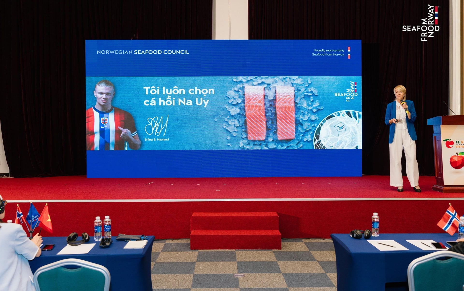 Tại triển lãm Food & Hospitality Vietnam 2026, bên cạnh gian hàng giới thiệu các sản phẩm hải sản Na Uy cùng những thế mạnh nổi bật, NSC cũng tổ chức một hội thảo quy tụ tám doanh nghiệp xuất khẩu hải sản hàng đầu của Na Uy, cùng các đối tác địa phương trong lĩnh vực bán lẻ và dịch vụ ăn uống, và các chuyên gia trong ngành. Hội thảo tập trung thảo luận về xu hướng tiêu dùng, thị trường, cũng như khám phá các cơ hội mới để thúc đẩy thương mại và tăng trưởng bền vững.