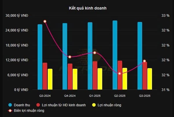 Ở chiều ngược lại, lãi từ dịch vụ giảm 26% còn 938 tỷ đồng, và lãi từ kinh doanh ngoại hối giảm 5% còn 1.280 tỷ đồng. Dù vậy, tổng lợi nhuận thuần từ hoạt động kinh doanh vẫn tăng 9% lên 12.015 tỷ đồng.