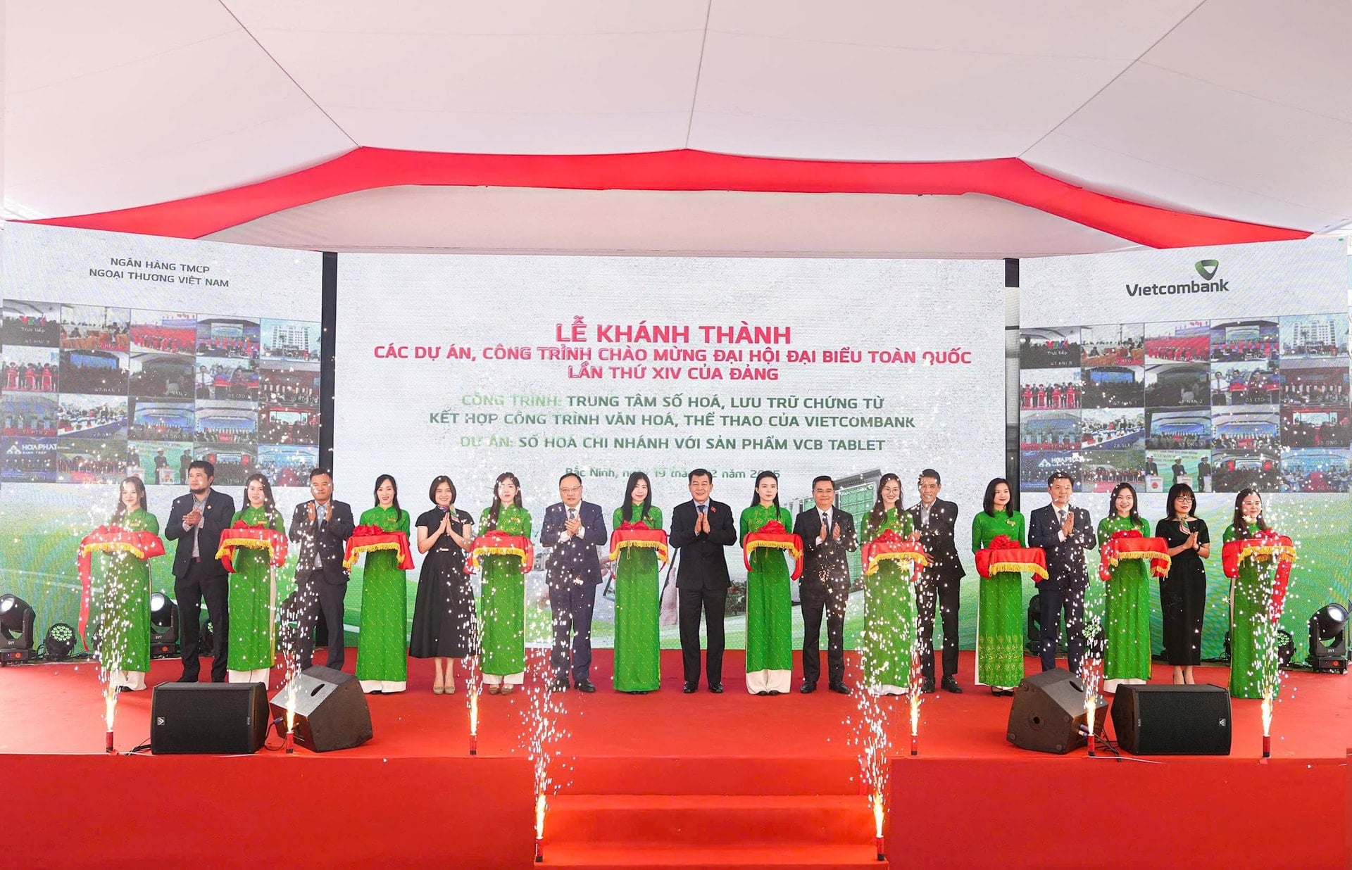 (Banker.vn) Ngày 19/12/2025 - Trong không khí phấn khởi, thi đua sôi nổi của toàn Đảng, toàn dân, toàn quân hướng tới Đại hội đại biểu toàn quốc lần thứ XIV của Đảng, thực hiện Công điện số 240/CĐ-TTg ngày 16/12/2025 của Thủ tướng Chính phủ và Công văn số 11121/NHNN-VP ngày 17/12/2025 của Ngân hàng Nhà nước Việt Nam, Ngân hàng TMCP Ngoại thương Việt Nam (Vietcombank) đã tổ chức Lễ khánh thành 2 công trình, dự án chào mừng Đại hội đại biểu toàn quốc lần thứ XIV của Đảng tại tỉnh Bắc Ninh.
