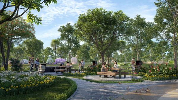 Không chỉ dừng lại ở đó, dự án còn ghi dấu ấn mạnh mẽ nhờ chiến lược quy hoạch lấy phát triển bền vững làm định hướng cốt lõi. Tỷ lệ không gian xanh và mặt nước được tính toán hài hòa với mật độ xây dựng, từ đó tạo ra vi khí hậu dễ chịu, tiết kiệm năng lượng và giảm thiểu áp lực lên hệ sinh thái khu vực.