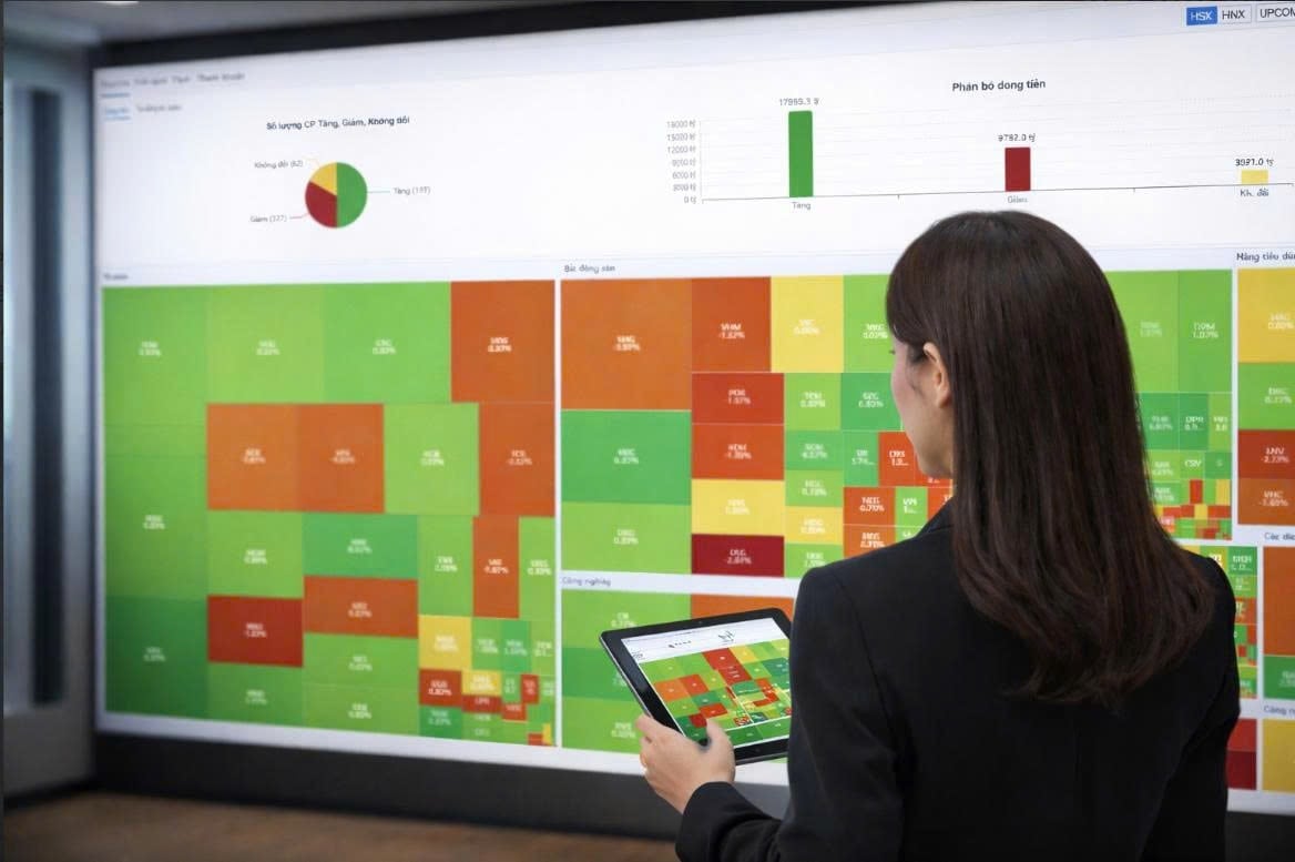 Nhóm ngân hàng cũng đóng góp tích cực vào nhịp hồi của thị trường khi một số cổ phiếu lớn quay đầu tăng giá. BID dẫn đầu với mức tăng 4,71% lên 45.600 đồng/cp, tiếp theo là VCB tăng 2,27%. Các mã LPB, CTG, VIB và SSB cũng đóng cửa trong sắc xanh, trong khi áp lực giảm chủ yếu tập trung ở TCB với mức giảm hơn 3%.