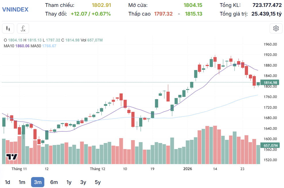 margin: 15px auto;" />Sau khi dừng chân tại mốc 1.802 điểm trong phiên trước, VN-Index khởi đầu ngày mới với trạng thái thận trọng và vận động lình xình quanh mốc tham chiếu. Thị trường ghi nhận sự phân hóa rõ rệt khi số mã xanh và đỏ gần như cân bằng, phản ánh tâm lý lưỡng lự của nhà đầu tư.