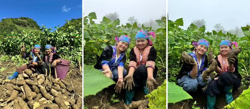 Vừ Thị Chứ và Vừ Thị Xia đã livestream bán 4 tấn củ sâm đất cho bà con mà không lấy phí