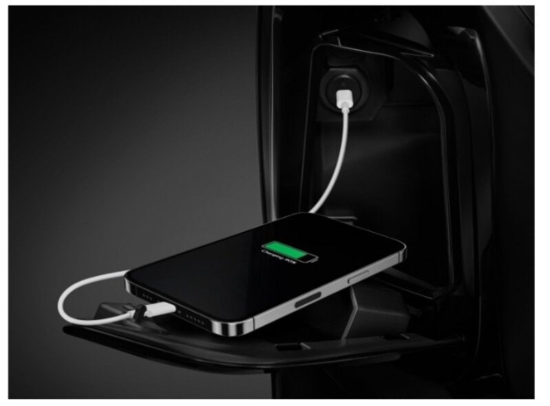 Không chỉ gây ấn tượng về ngoại hình, Honda UC3 còn được đầu tư mạnh về tiện ích. Dưới yên xe là cốp chứa đồ dung tích lên tới 26 lít, đủ để chứa mũ bảo hiểm cùng nhiều vật dụng cá nhân khác. Phía trước xe có thêm hộc chứa đồ kèm nắp đậy, tích hợp cổng sạc USB, cho phép người dùng sạc điện thoại, tai nghe hay đồng hồ thông minh ngay trong quá trình di chuyển.