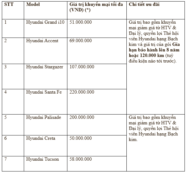 (Banker.vn) Liên doanh ô tô Hyundai Thành Công Việt Nam (HTV) chính thức triển khai chương trình ưu đãi dành cho khách hàng mua xe trong tháng 4/2026 - “Vui Thống Nhất - Nhận quà chất”, với mức hỗ trợ hấp dẫn, giảm giá bán lên đến 220 triệu đồng, bao gồm chính sách gia hạn bảo hành lên đến 8 năm hoặc 120.000 km (tùy điều kiện nào đến trước). Chương trình được áp dụng tại tất cả các Đại lý ủy quyền Hyundai 3S trên toàn quốc.
