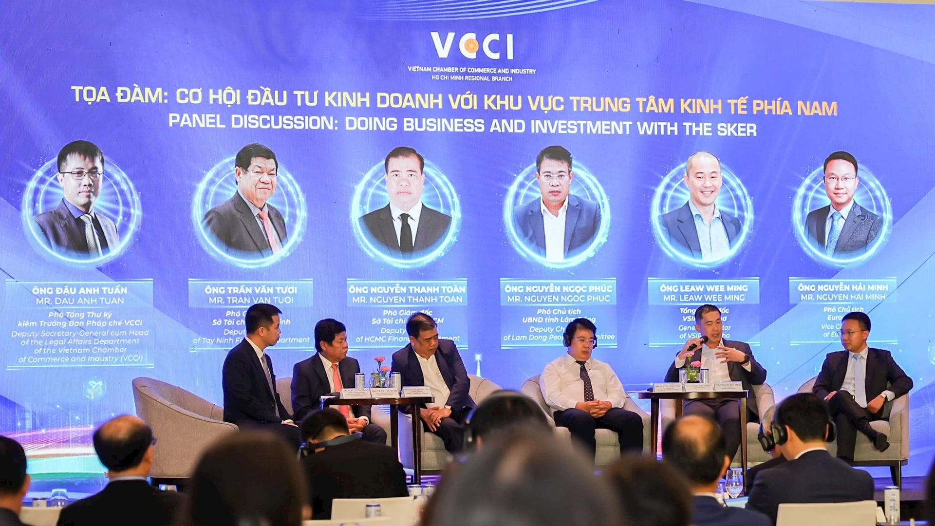 Phát biểu khai mạc sự kiện, ông Võ Tân Thành - Phó Chủ tịch Liên đoàn Thương mại và Công nghiệp Việt Nam (VCCI) cho biết, Vùng Trung tâm Kinh tế phía Nam tiếp tục khẳng định vai trò là động lực tăng trưởng quan trọng hàng đầu của cả nước. Với hạt nhân là TP. Hồ Chí Minh và các địa phương lân cận, khu vực này là trung tâm lớn về công nghiệp, thương mại, dịch vụ, tài chính, logistics và đổi mới sáng tạo; là nơi tập trung đông đảo cộng đồng doanh nghiệp năng động, các tập đoàn lớn trong nước và quốc tế.