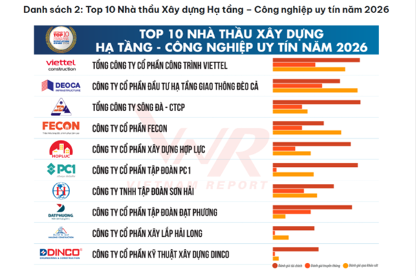 Ngày 27/3, Vietnam Report công bố bảng xếp hạng các doanh nghiệp uy tín trong ngành xây dựng, bao gồm Top 10 và Top 5 năm 2026.
