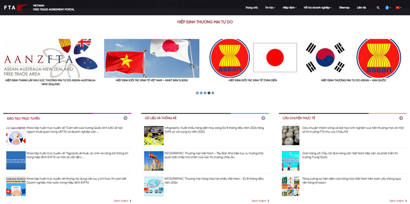 Cổng thông tin điện tử Hiệp định Thương mại tự do Việt Nam (Vietnam FTA Portal - FTAP, địa chỉ: fta.gov.vn) là công cụ tra cứu thông minh, tiên tiến, giúp doanh nghiệp và người dân tận dụng hiệu quả các Hiệp định Thương mại Tự do (FTA) mà Việt Nam tham gia.