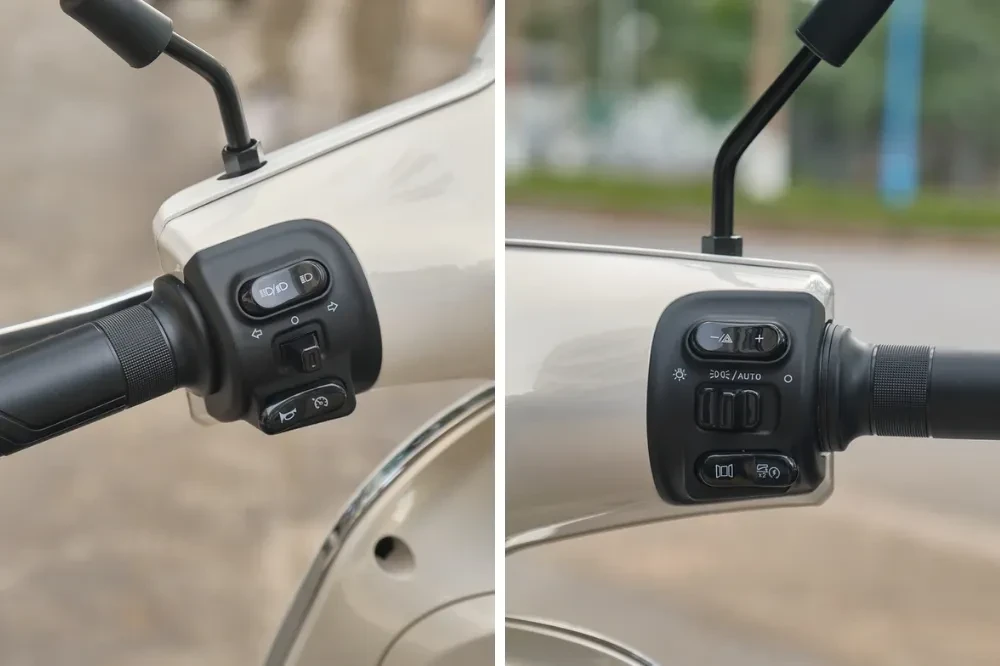 Hệ thống giảm xóc gồm thụt dầu phía trước và lò xo trụ giảm chấn thủy lực phía sau giúp xe vận hành êm ái hơn trên các đoạn đường gồ ghề. Xe đi kèm phụ kiện như gương chiếu hậu, bộ sạc và hệ thống chống trộm, tăng tính tiện dụng và an tâm khi sử dụng hằng ngày.