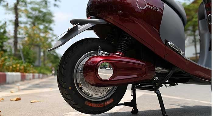 Xe sử dụng lốp liền săm là lựa chọn quen thuộc trên nhiều mẫu xe máy điện phổ thông giúp giảm nguy cơ xì hơi đột ngột và phù hợp với mặt đường đô thị có nhiều vật sắc nhọn. Đây là yếu tố được nhiều người dùng đánh giá cao khi lựa chọn xe điện cho nhu cầu đi lại hằng ngày.
